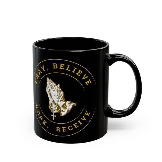 Pray, Believe, Work, Receive - Black Coffee Mug (11oz, 15oz)