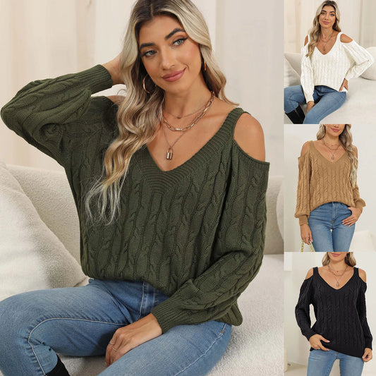 Casual Long Sleeve off the Shoulder Ladies Knitwear Pullover