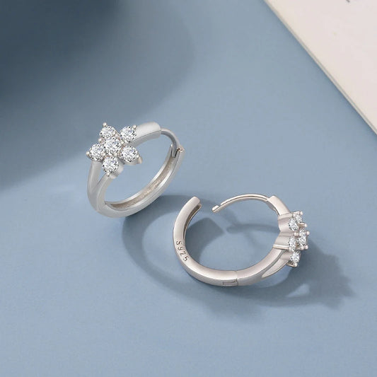 925 Sterling Silver Flower Hoop Earrings For Women