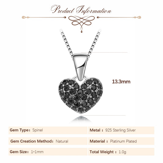 Heart Natural Black Spinel Pendant Necklace