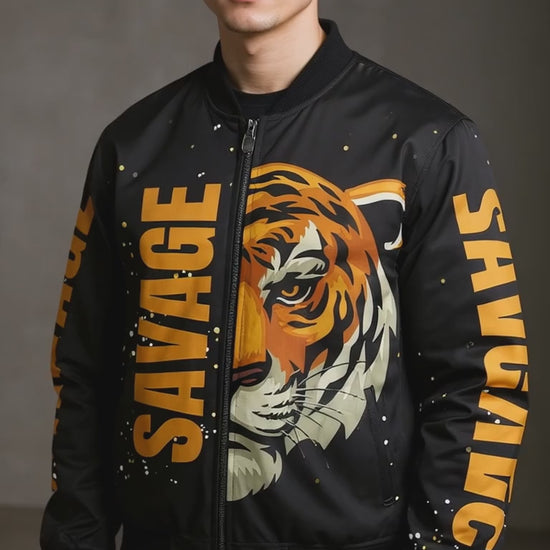 Savage Tiger Men's Bomber Jacket, Streetwear Jacket, Cool Casual Outerwear, Statement Piece, Gift for Him